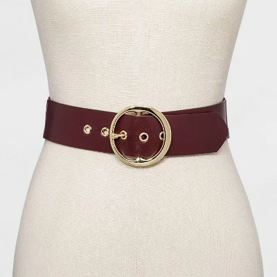 Accentuate your waist while taking your look up a notch with this Round Buckle Belt from A New Day™. This women’s belt makes a versatile choice in your accessories collection. Designed with a golden round buckle for classic flair, this solid belt with loop holes and back elastic detailing look great while giving a secure fit to all your outfits. Pair this belt with anything from casual jeans to formal trousers to dresses to effortlessly accessorize your go-to looks.