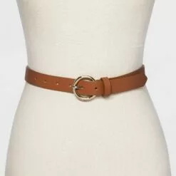 Update your styling essentials with this charming Round Buckle Belt from A New Day™. This classic belt in a solid finish makes a go-to styling piece in your accessories collection. It features a golden buckle closure for a polished look, and the multiple hole adjustments offer a customized fit to make sure your pants or skirts stay securely in place. Pair with casual jeans or formal trousers to give a statement finish to your look.