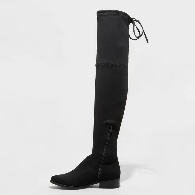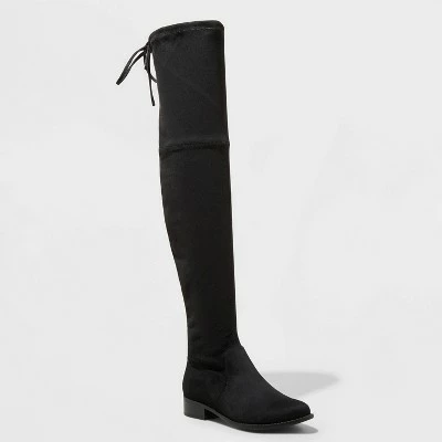 Get ready to step out in style wearing these Sidney Over-the-Knee Boots from A New Day™. Featuring an over-the-knee design with a pointed toe to add to the drama, these medium-width boots feature a 1.5-inch block heel for added height. The cushioning on the inside ensures your feet stay comfy, while an attached tie cinches them to let you find the best fit. In a solid suede finish with tonal stitch detailing and a side partial zipper for added flair, they make the perfect pick with anything from a sweater dress to a midi skirt for edgy flair.