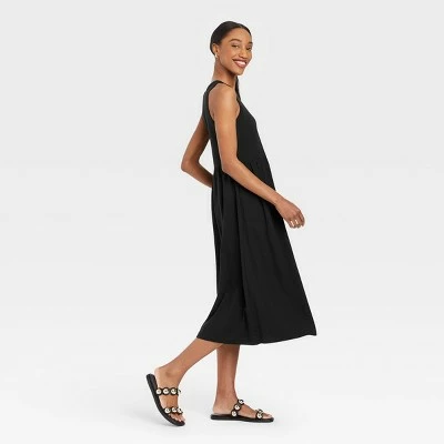 Amp up your everyday wear with this Sleeveless Knit Ballet Dress from A New Day™. Made from soft fabric with a hint of spandex for comfortable wear, this sleeveless dress features a classic crew neckline, turnback hem and a midi length, making getting ready for any day an effortless affair. Plus, side seam pockets offer a little storage for your small personal items. Pair this ballet dress with slip-on flats, casual sneaks or wedge-heel sandals to create your own unique personal aesthetic.