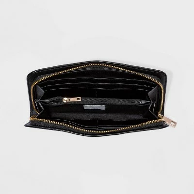 Whether you’re looking for a way to keep things organized in a larger bag or just want to keep the essentials close at hand, the Zip Wallet from A New Day™ makes a great pick. This wallet has a structured rectangular silhouette for a simple design, with faux leather with alligator skin texture elevating the look several notches. The basic black hue makes the wallet easy to coordinate with any ensemble, while an inner zip pocket and multiple card slots help you keep organized. The piece zips closed with a zipper that goes around three sides to hold everything securely inside.